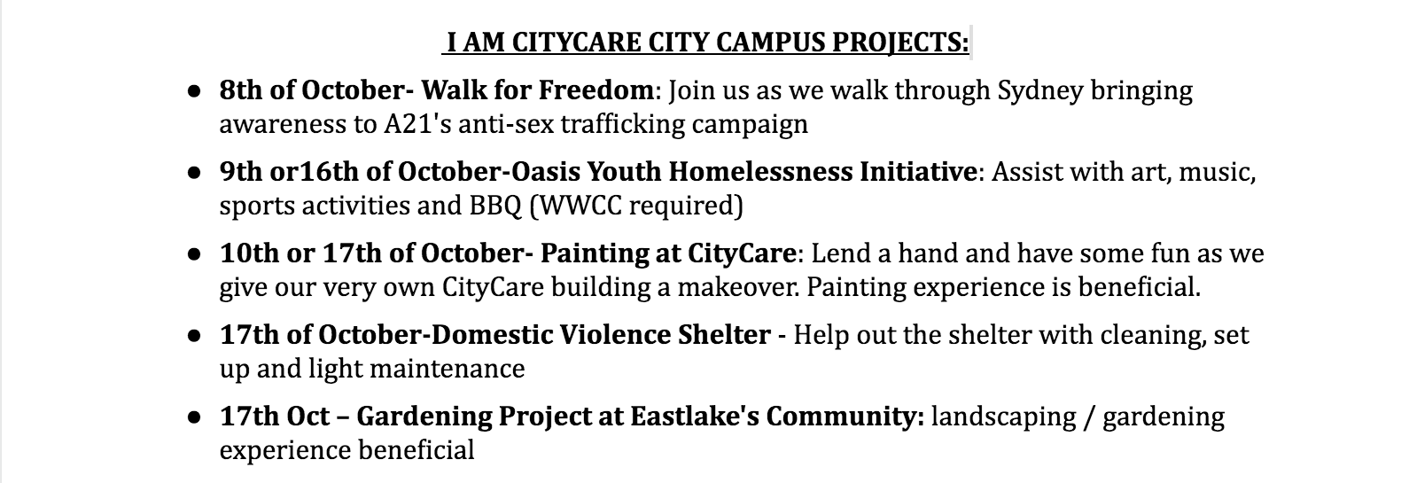 During my time in Australia, I was an assistant project manager for CityCare. We developed the “I AM CityCare” campaign for the City Campus. The goal of this campaign was to increase the number of volunteers. To achieve this goal, we utilized video, email, and experiential marketing to engage our audience. As a result of this campaign, we welcomed 220 new volunteers!